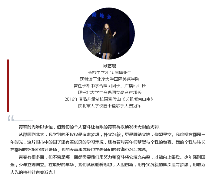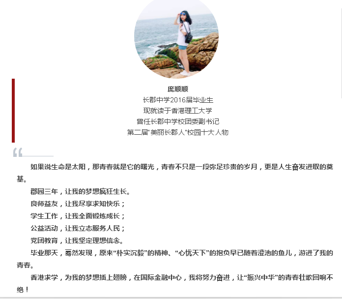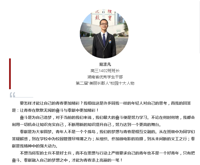 让我们一起来聆听他们的感言,感受那股朝气蓬勃的长郡青年力量!