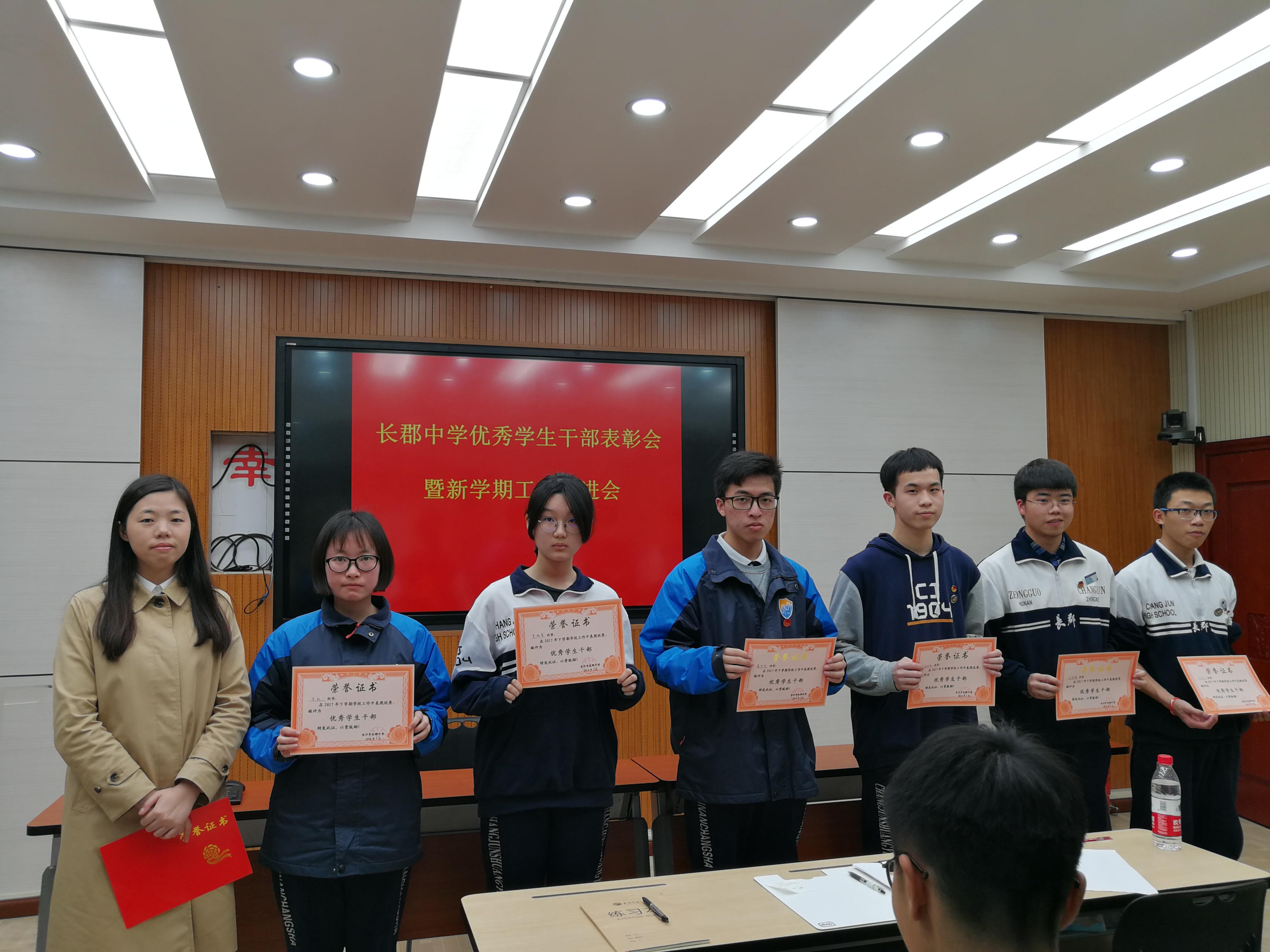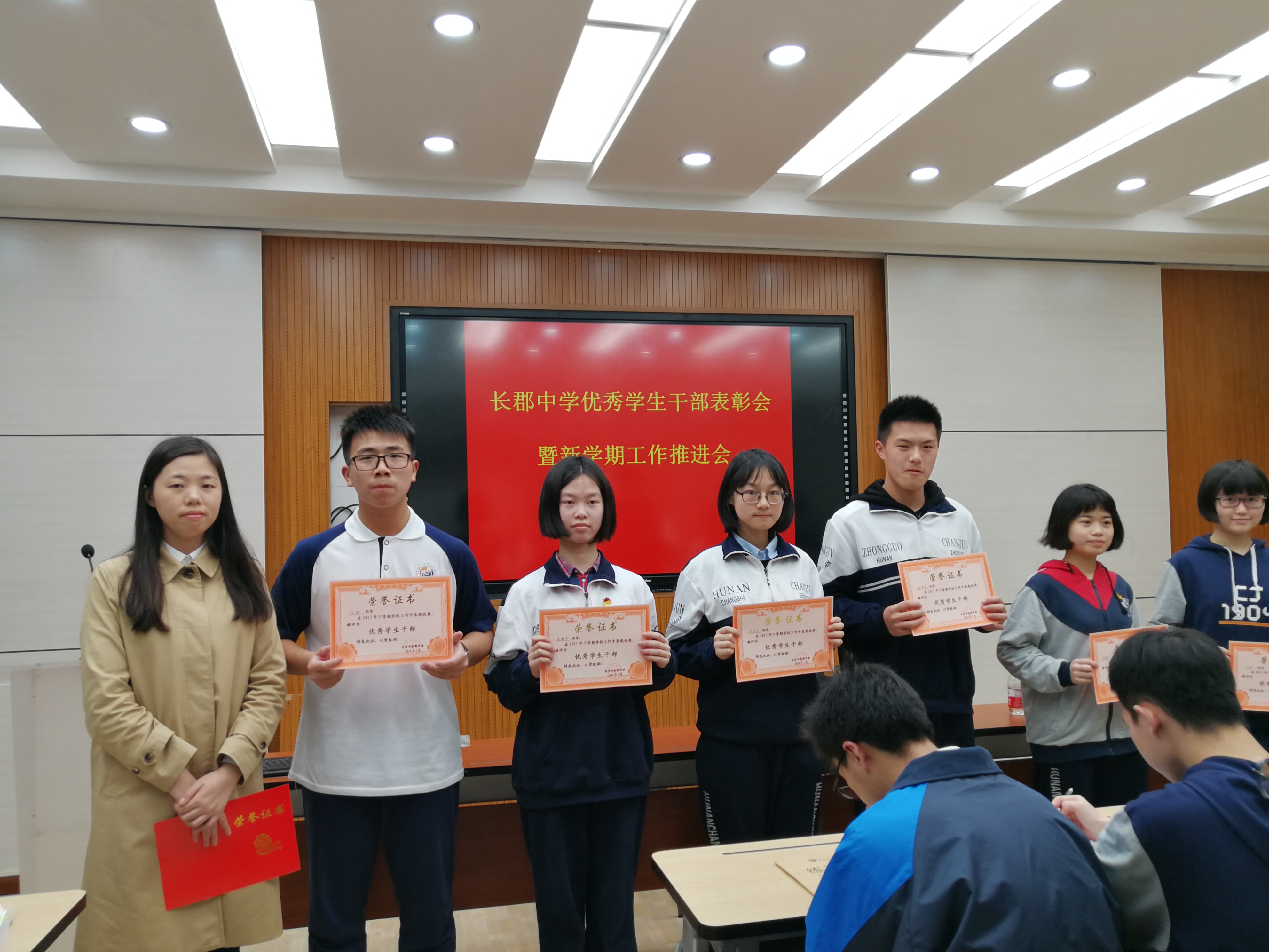 会上胡承志主任对上学期的优秀学生干部进行了表彰,并由陈溪书记进行颁奖与合影。大会号召:四大团队要充分发挥桥梁纽带和组织作用,学生干部要起到良好的带头和模范作用,每一位干部都要做一个内心强大、充分自信的人。高一的干部要打消荣誉是否获得的顾虑,在工作时多融入自己的思考,在传承中创新,高二的干部面对即将到来的考试要内心充分自信,注意细节,不给自己留下遗憾。