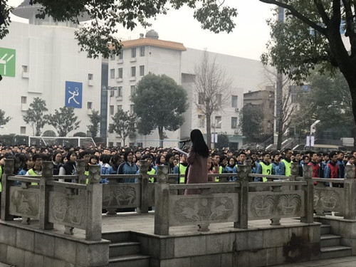 我是高二语文组的谭艺琼老师。几天前,当我接到任务回到家里告诉女儿时,女儿“噗”的一声笑了,“哈哈,妈妈,你暴露年龄啦!”没错,今天之所以有机会站在国旗下讲话,是因为我生于1978年,我是——改革开放同龄人。