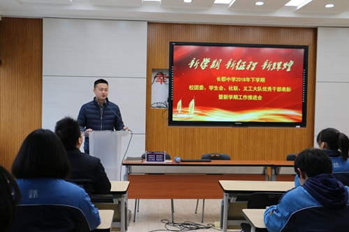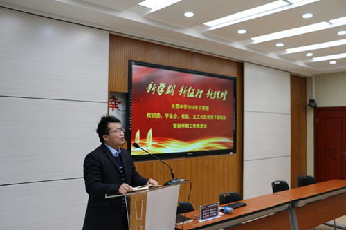 2019年2月28日,2018年下学期校团委、学生会、社联、义工大队优秀干部表彰暨新学期工作推进会在办公楼四楼会议室隆重举行,教育处王星主任出席并讲话,会议由团委常锦老师主持。