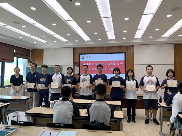 2019年9月3日,2019年上学期校团委、学生会、社联、义工大队优秀干部表彰暨新学期工作推进会在办公楼四楼会议室隆重举行,教育处陈溪主任出席并讲话,会议由团委王宇老师主持。