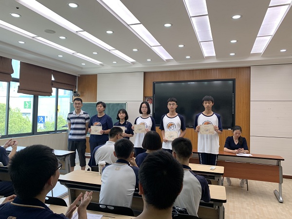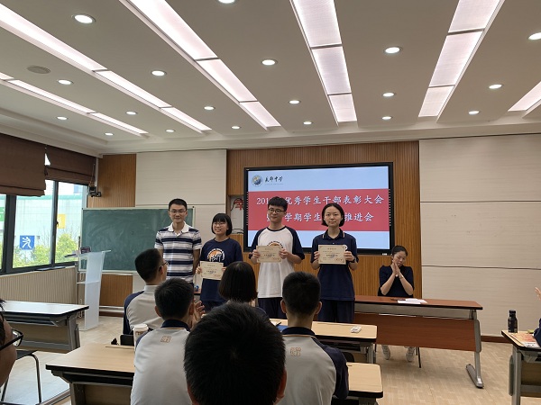 会议在庄严的校歌声中拉开帷幕。首先由陈溪主任宣读了2019年上学期校团委、学生会、社联、义工大队优秀干部表彰决定,并为获奖学生干部颁奖。接着,陈溪主任对新学期学生工作提出要求和希望,她从荣幸、期待、互利和传承等四个关键词谈到了自己多年来对学生工作的思考和想法,借此希望所有学生干部在拥有创新精神的同时能够脚踏实地去落实,将想法付诸实践,勤勉务实。同时身为学生干部也要严格要求自己,不仅在学生工作、团队合作等方面有锻炼有突破,更要在学习成绩上做好表率。最后,王宇老师就本学期开学初的教师节、垃圾分类、新成员招新等工作进行简要布置,指出在接下来的工作中,希望同学们多一份担当、多一份创新、多一份理解,期待四大学生干部队伍,在新学期里,百尺竿头更进一步,学校学生自主管理和活动中作出自己应有的贡献。