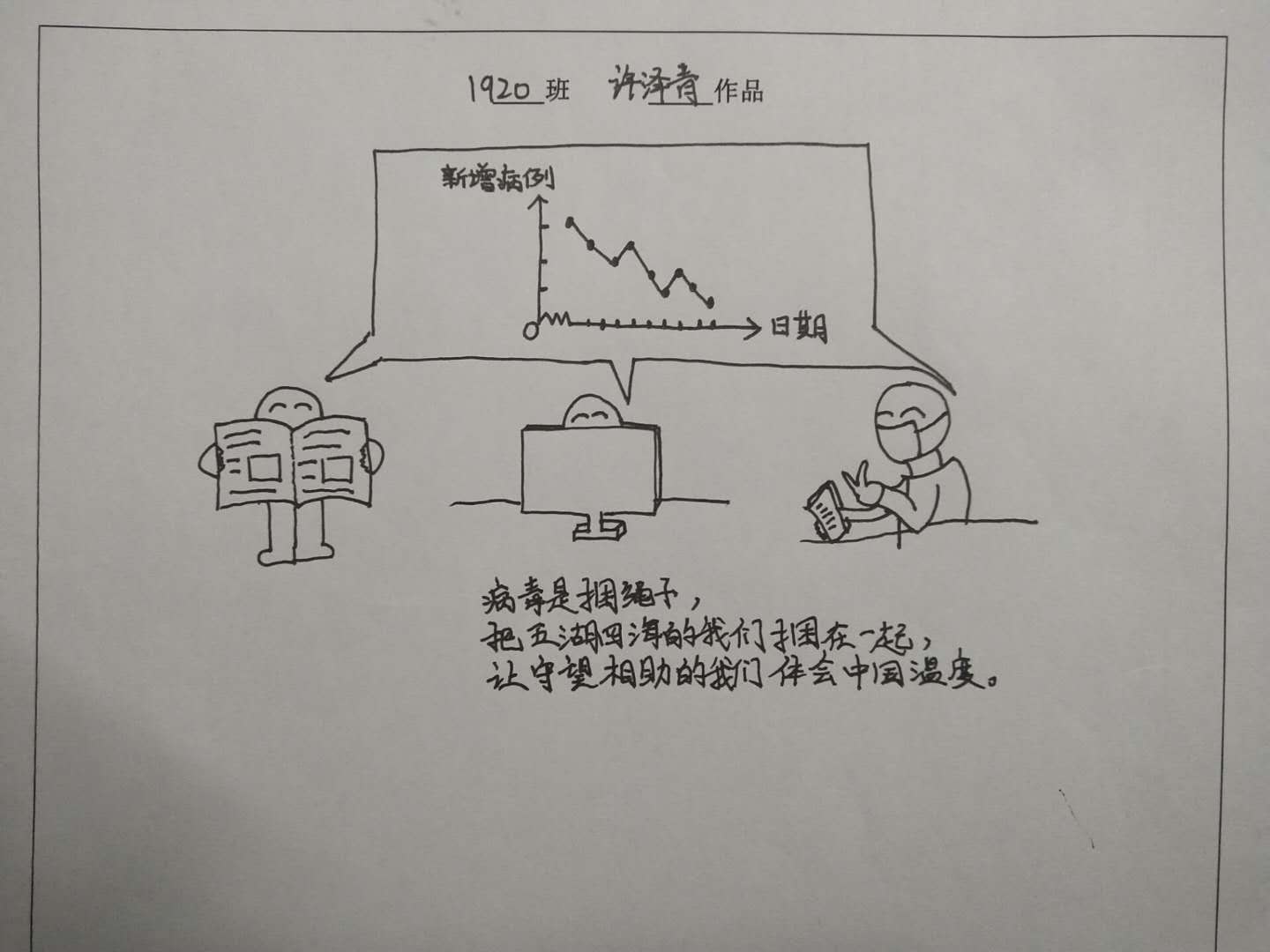 2020年,因为疫情,我们度过了一个漫长而揪心的冬天。寒假期间,长郡中学高一年级同学开展了一场“诗画传情”活动,大家用画笔、用三行诗,记录下抗疫期间的温暖与感动、体悟与哲思。一幅幅画卷仿佛一扇扇窗子,为我们展现出病毒肆虐下的上下一心、医护工作者的奋勇逆行、电脑屏幕前的努力求学、对樱花盛开的注目期望……