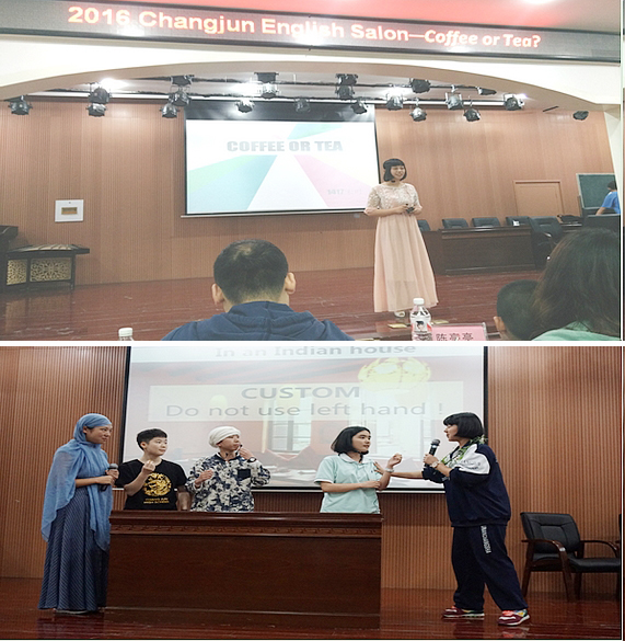 配合长郡中学第一届人文节,由英语教研组精心策划,高二英语备课组认真承办,高二年级组、模联社团、年级学生会全力协办的“2016首届“Changejun English Salon---Coffee Or Tea?”英语文化沙龙活动,经历班级初选、年级复选,于2016年5月18日下午在学校办公楼六楼会议室隆重举行,总共有13个节目70多人进入了决赛展示活动环节。
