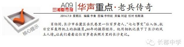 【长郡校友】:99岁抗战老兵,拍下“长沙史记”