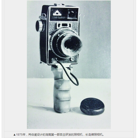 1975年,肖伯訚设计了湖南第一台自主生产的照相机——长岛牌照相机。5月,3台全手工制作的样机完工。“照相机的每个螺丝钉都是湖南人自己生产的?!?肖伯訚骄傲地说。