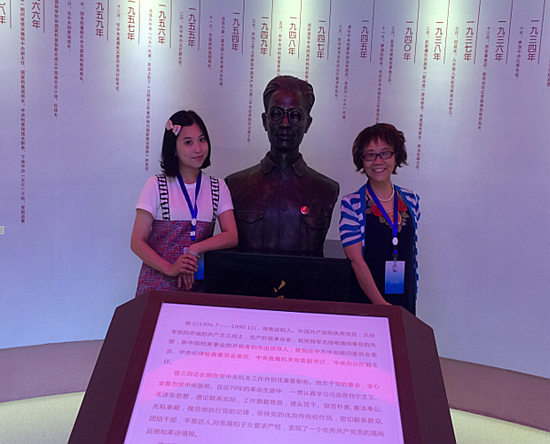 曾三之女曾晓前女士携后代一行五人于7月20号上午特地来到她父亲曾三学习过的母校长郡中学,她们参观长郡革命烈士纪念碑,阅读曾三同志给母校的来信和讲话稿,当看到校园曾三书写的校训“朴实沉毅”时,感动万分。学校党委杜慧书记热烈欢迎曾晓前一行的到来,她说,曾三同志书写的“朴实沉毅”已成为长郡的一种符号,一种元素,长郡人要把这种朴实沉毅的精神永远传承下去。曾女士也表示,“‘朴实沉毅’的精神不但长郡师生要继承,曾家的后辈也要牢记并遵循”。