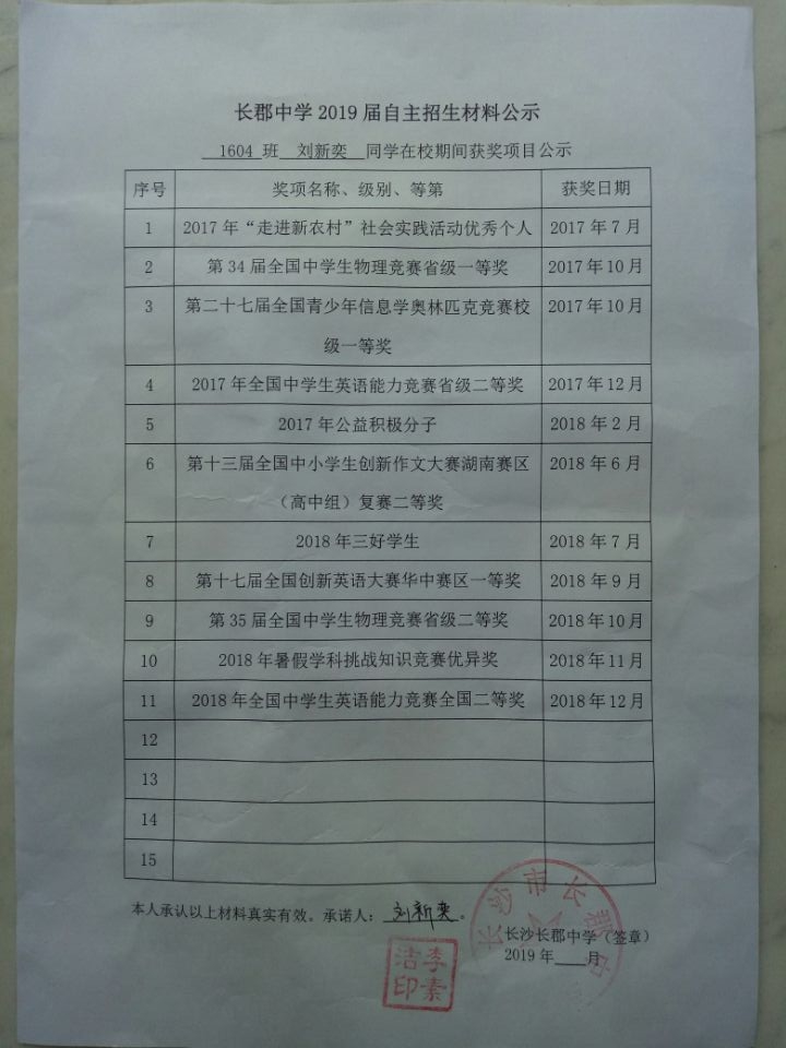 1604班刘新奕自招材料网络公示