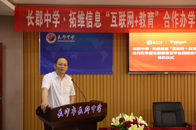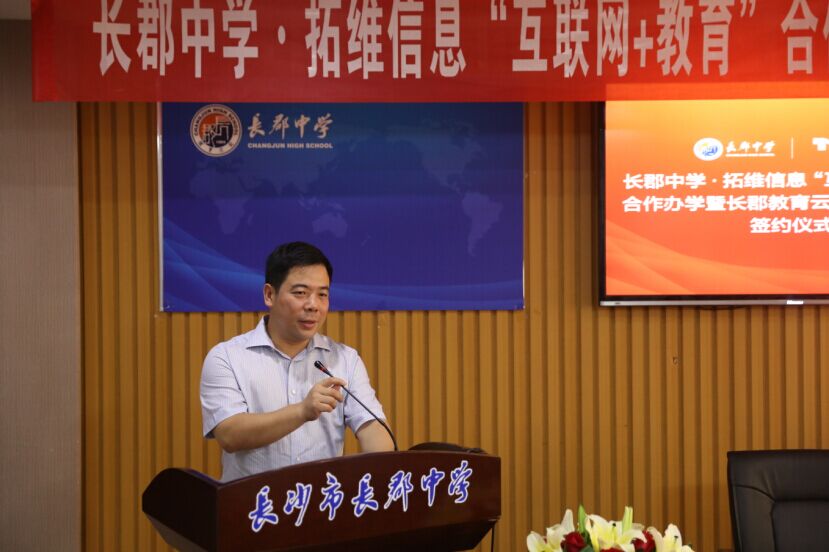 签约仪式上,长郡中学与拓维信息的负责人一致表示,此次合作是双方基于“互联网+教育”的探索、创新和融合,是一次双赢。