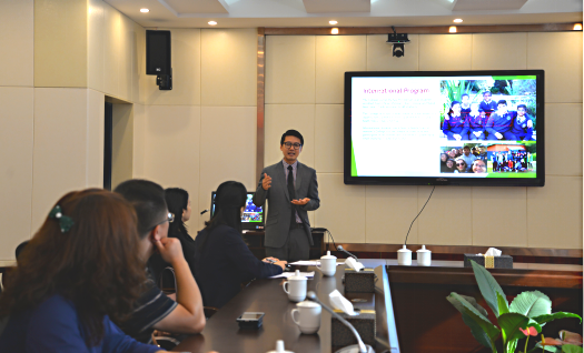 Mr.Quang Le副校长以视频、PPT课件的方式,全面地介绍了圣马龙学院的办校历史,多元文化背景、从幼教到高中一体化的办学体制,以及在体育、艺术、机器人等方面的办学特色。