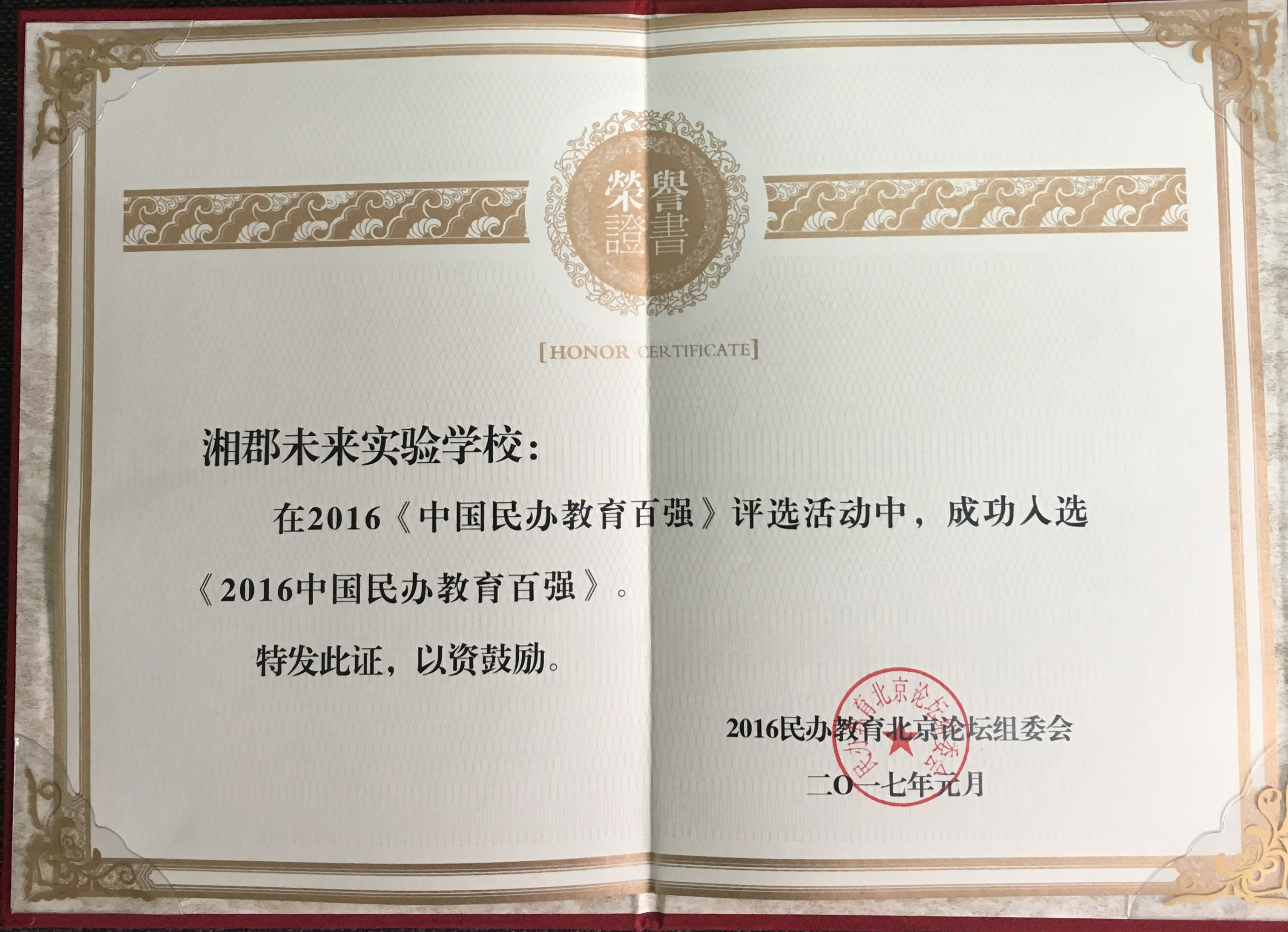 湘郡未来实验学校:湘郡未来实验学校荣获2016中国民办教育百强光荣称号
