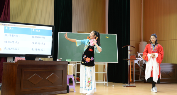 老生的角色,青衣和花旦的不同,净角的花脸,滑稽的丑角已然根植于孩子和现场老师的心。