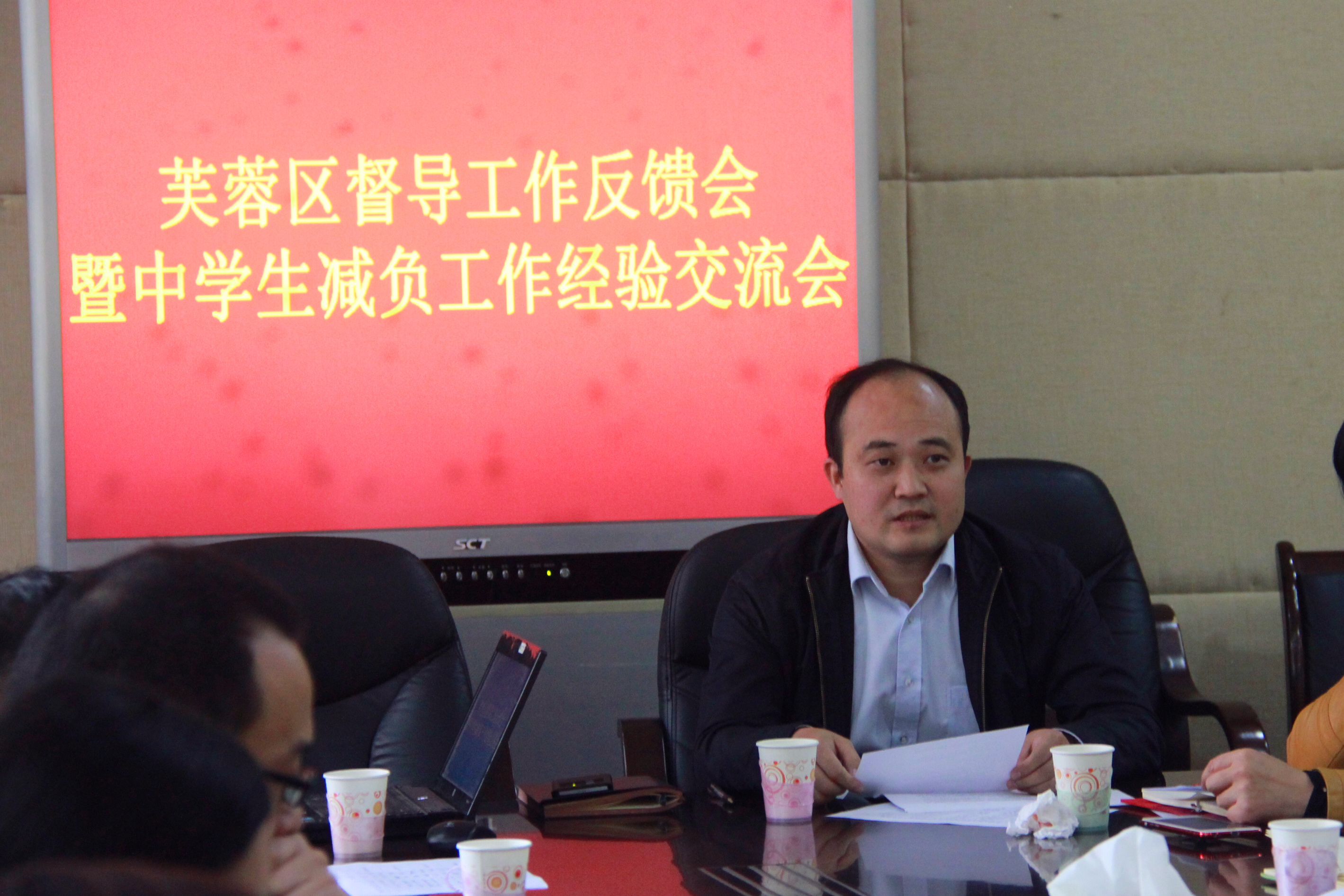 长郡芙蓉中学、湘一芙蓉中学、湘一芙蓉二中、长郡芙蓉实验中学进行“减负”工作经验交流分享。各校从控量、提质、增效等方面,找到了各具特色的减负方式,有效地开展了提质减负工作。督导室王泽芳主任对各校依托学校特色,建设减负机制给予充分肯定,并期望芙蓉区的此项工作能在其他区县进行交流和推广。
