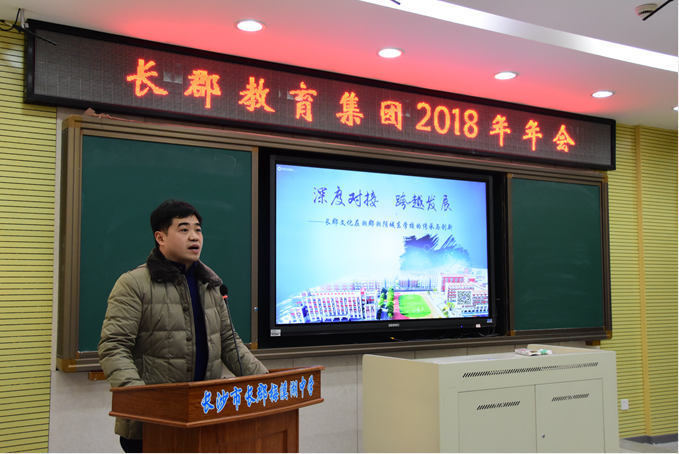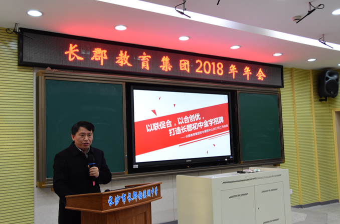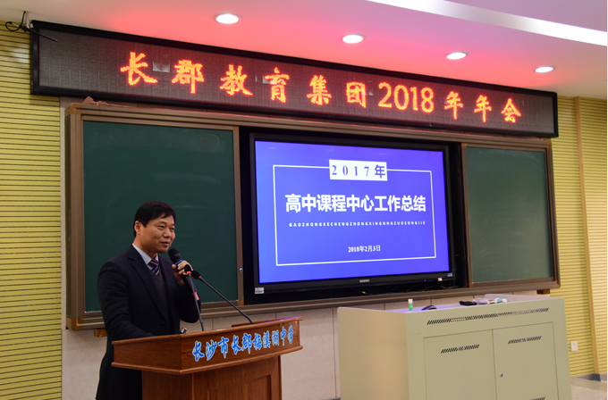 会议之初,长郡教育集团高中课程中心、长郡中学教务处主任罗清华,初中课程中心主任、长郡双语中学校长徐铁刚,集团小学课程中心主任、麓山国际实验小学校长黄斌,集团管委会秘书处主任印道红分别以“教研·出口·迎新”“以联促合,以合创优,打造长郡初中金字招牌”“春华秋实结硕果,风劲扬帆正当时”“传承长郡精神,建设集团文化”为主题,汇报了2017年度集团各课程中心和集团秘书处工作。