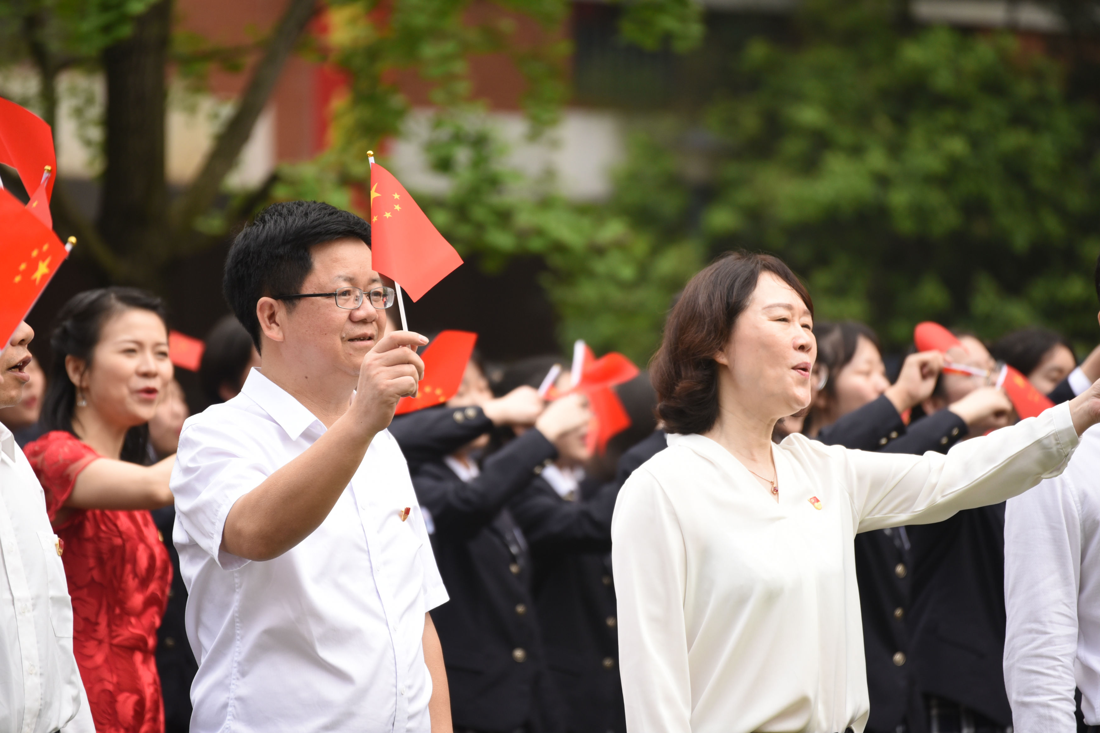 学校党委书记梁惠林用清脆嘹亮的歌声加入领唱,千人弦歌齐颂祖国,广场顿时荡起一阵阵激情高昂的歌声,此起彼伏,荡气回肠。当《我和我的祖国》的旋律从人群中飞出,每一位郡园师生都兴奋地拿起手机,记录下让人感动的瞬间,珍藏下每一位参与者脸上的如花笑靥。