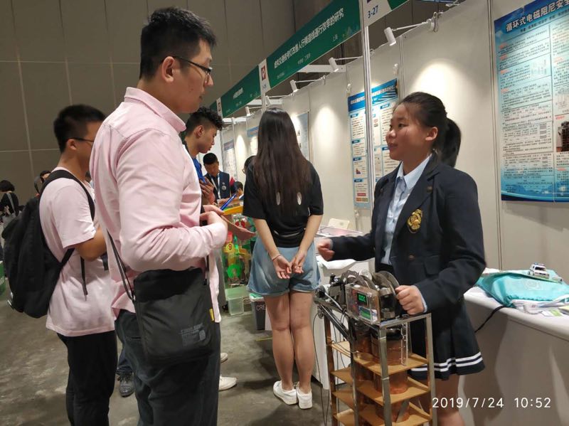 7月22日—25日,在澳门大学举行的第34届全国青少年科技创新大赛上,长郡芙蓉中学1713班邓诗宇、1705班伍泽航同学的发明创造“循环式电磁阻尼安全速降装置”荣获银奖。该发明创造利用强磁体在铜管中下降时产生电磁阻尼,再配合滑轮组进行增加承重,减缓速度的原理,达到循环往复安全速降的目的,帮助群众在高楼发生火灾时自发性进行自救与互救。本项目采用了文献查阅法,对比实验法及建模与模型测试法。