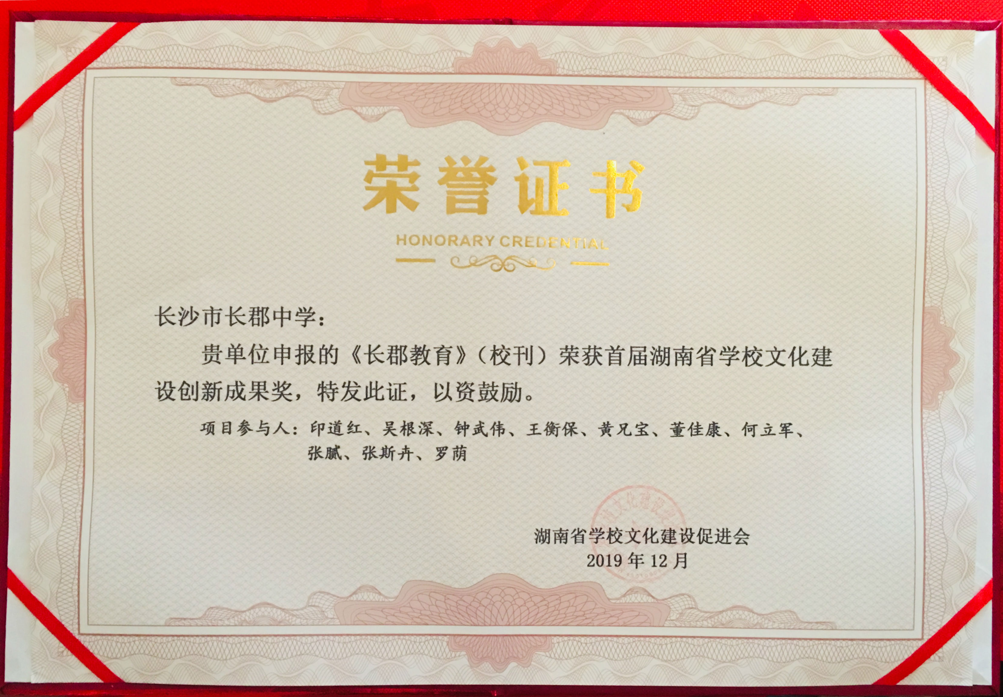 12月14日,从湖南省第二届文化强?;ザ厶臭哐N幕ㄉ璐葱鲁晒故净疃?/span>上传来消息,《长郡教育》杂志荣获“首届湖南省学校文化建设创新成果奖”。