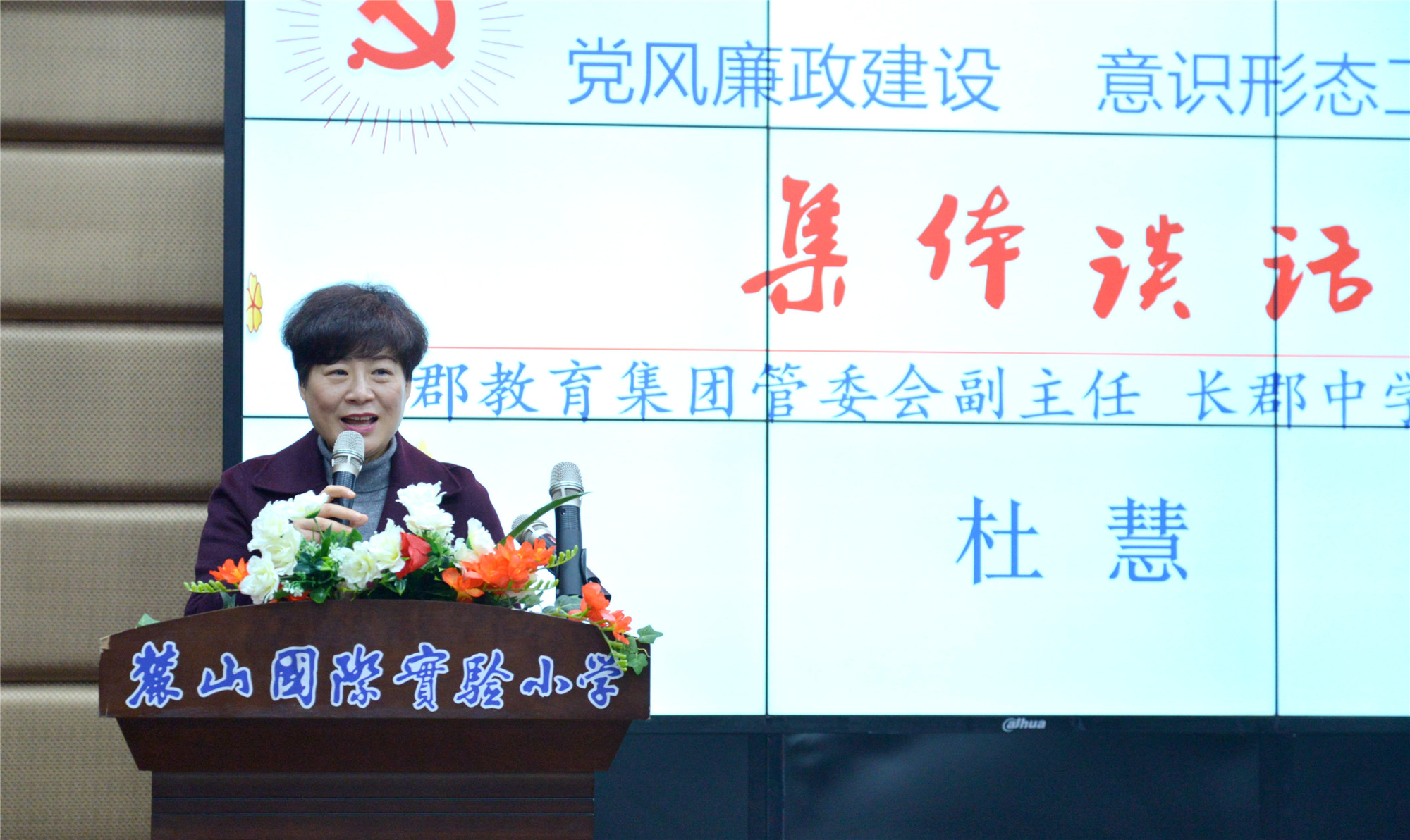 同时,长郡教育集团管委会副主任、长郡中学党委书记杜慧书记还进行了长郡教育集团2019年度党风廉政建设与意识形态工作集体谈话,强调集团各校要维护教育的形象、珍惜长郡的形象、爱护自身的形象。